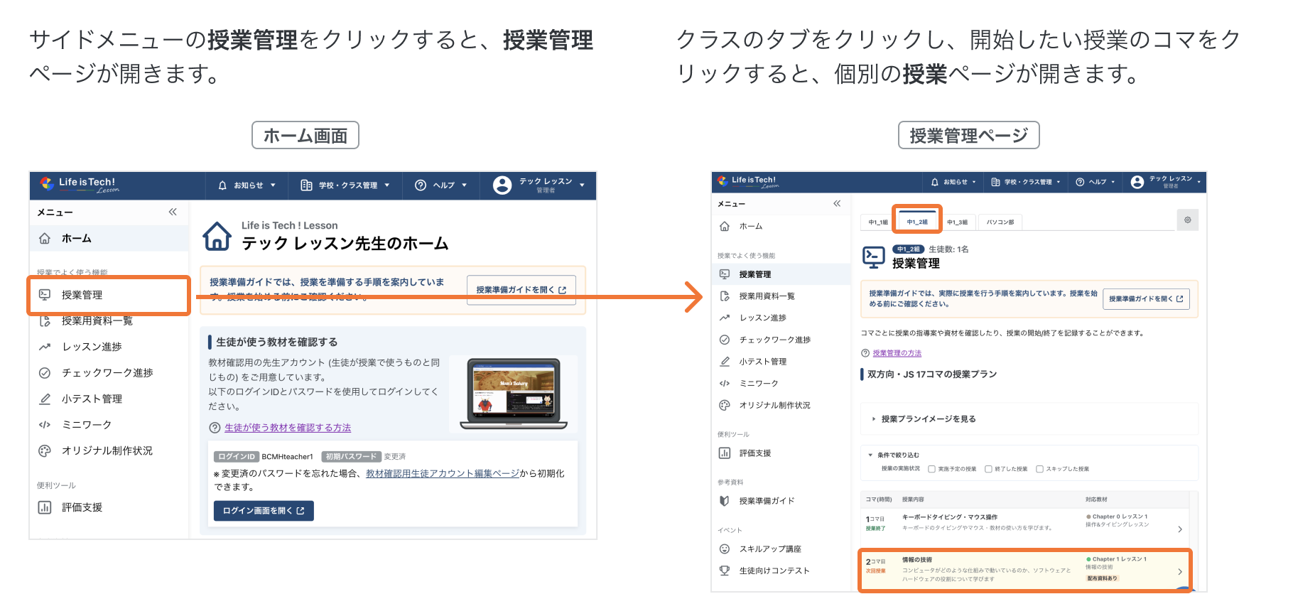 1. 授業管理ページを開く