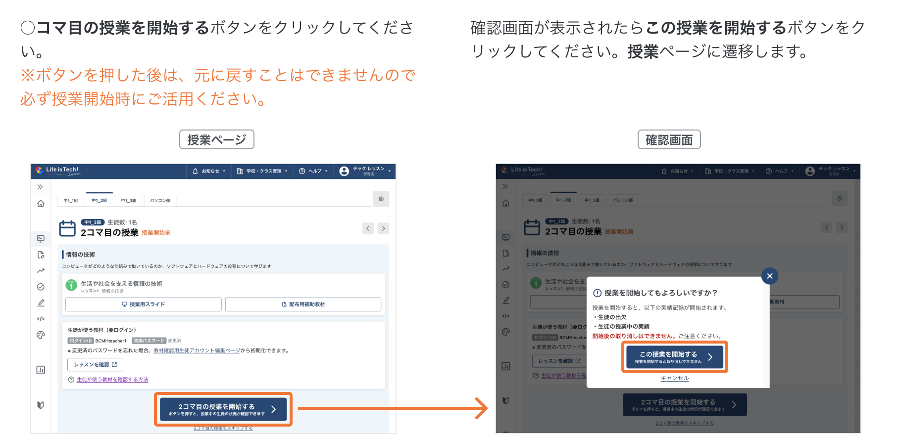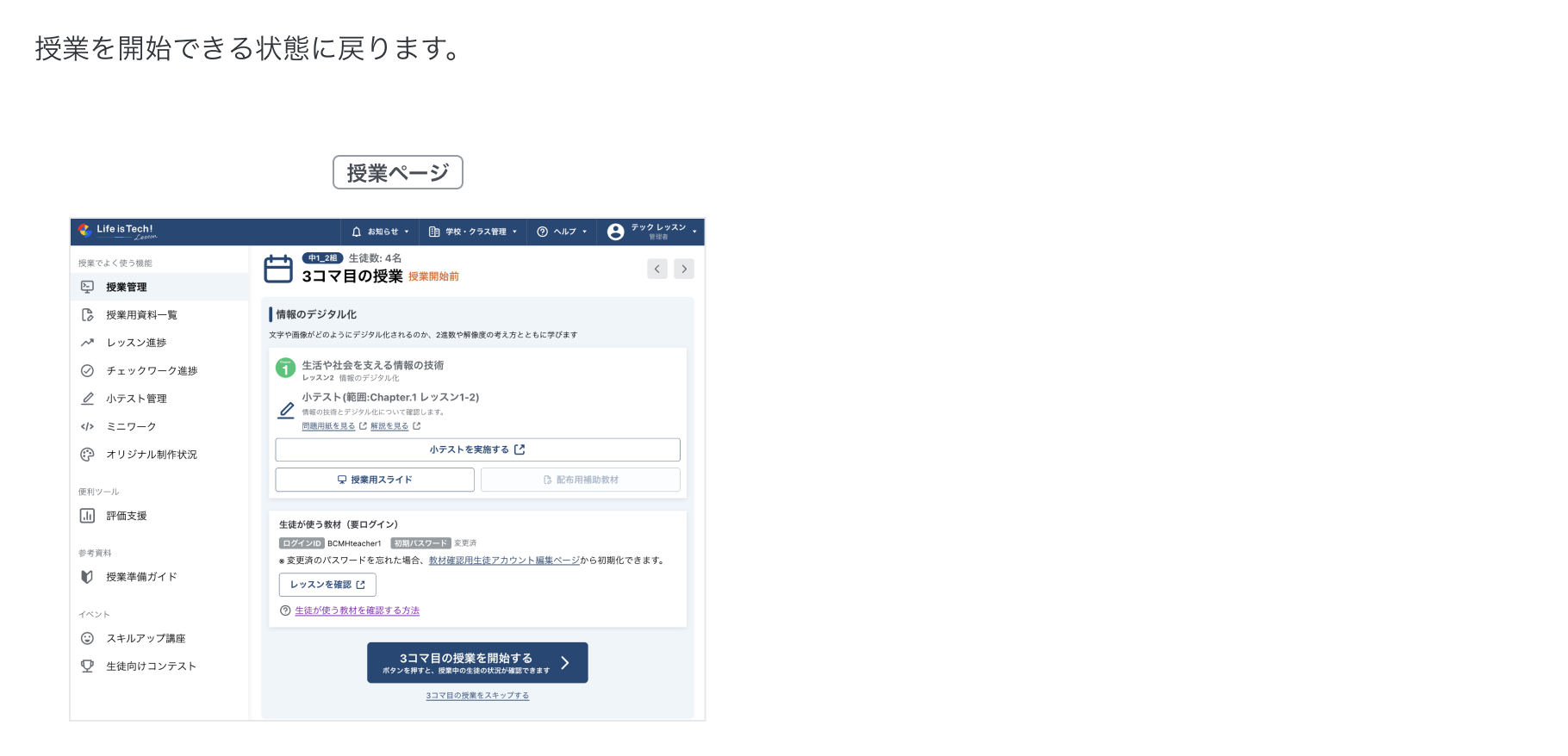 授業をはじめる手順です。