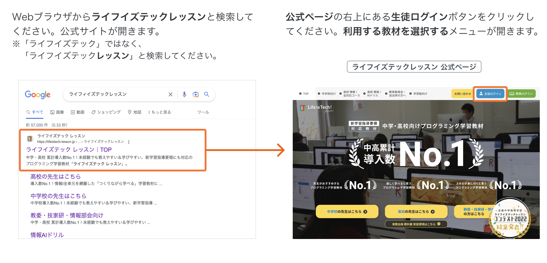 生徒が教材を利用する手順です。