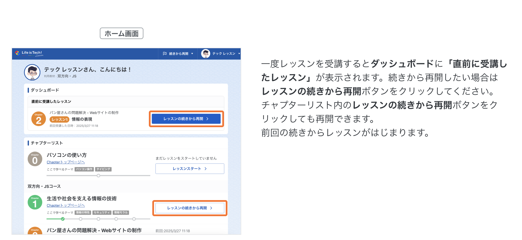 7. レッスンの続きから再開する