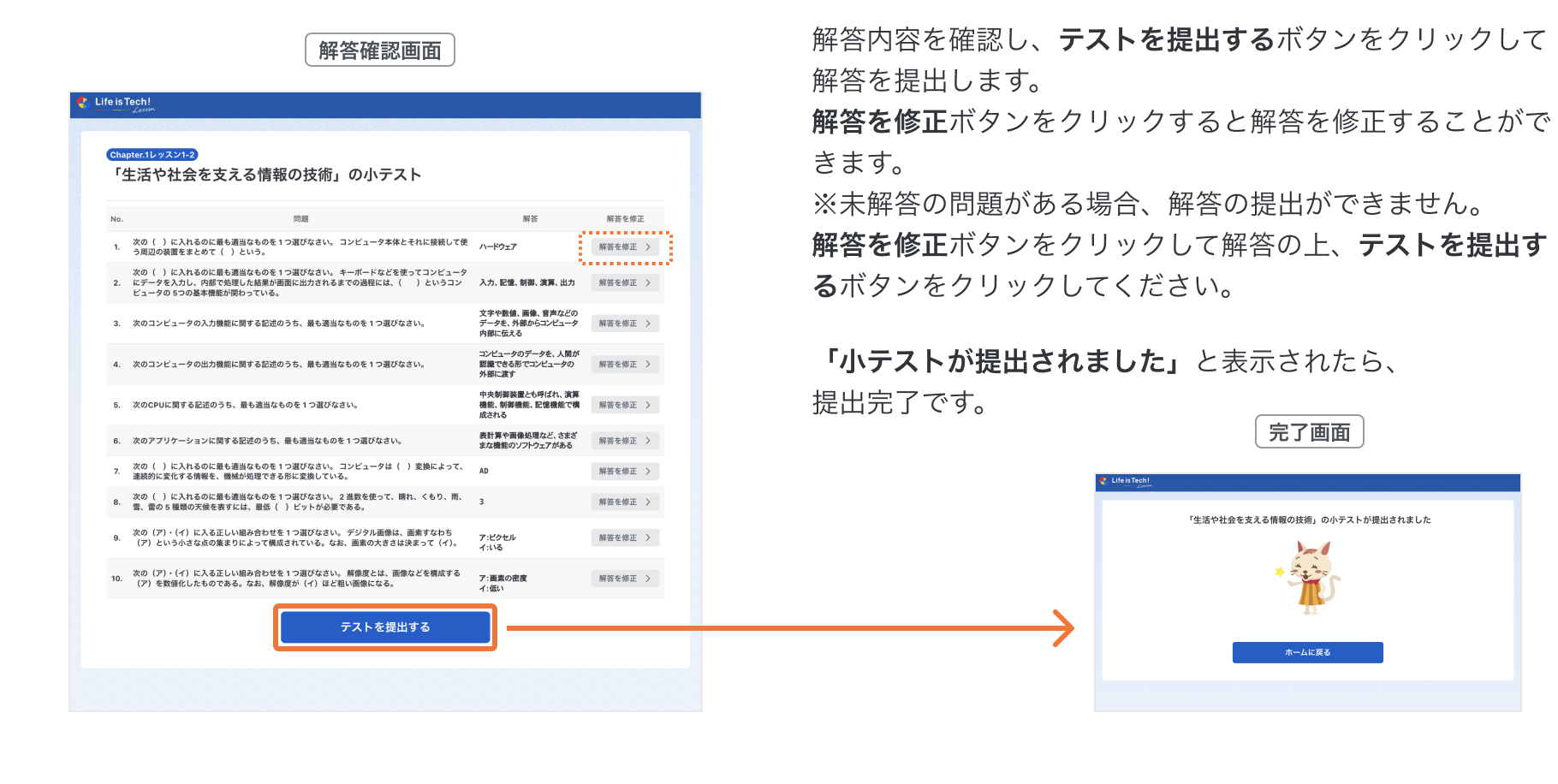 生徒が小テストを受験する方法
