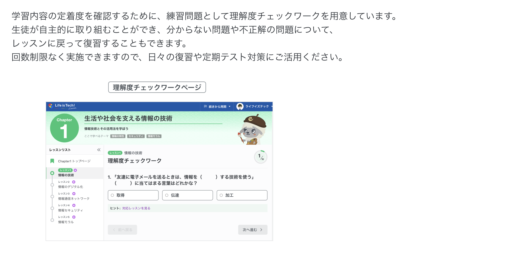 理解度チェックワークについての説明です。