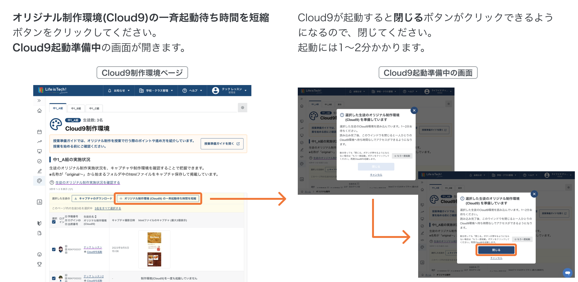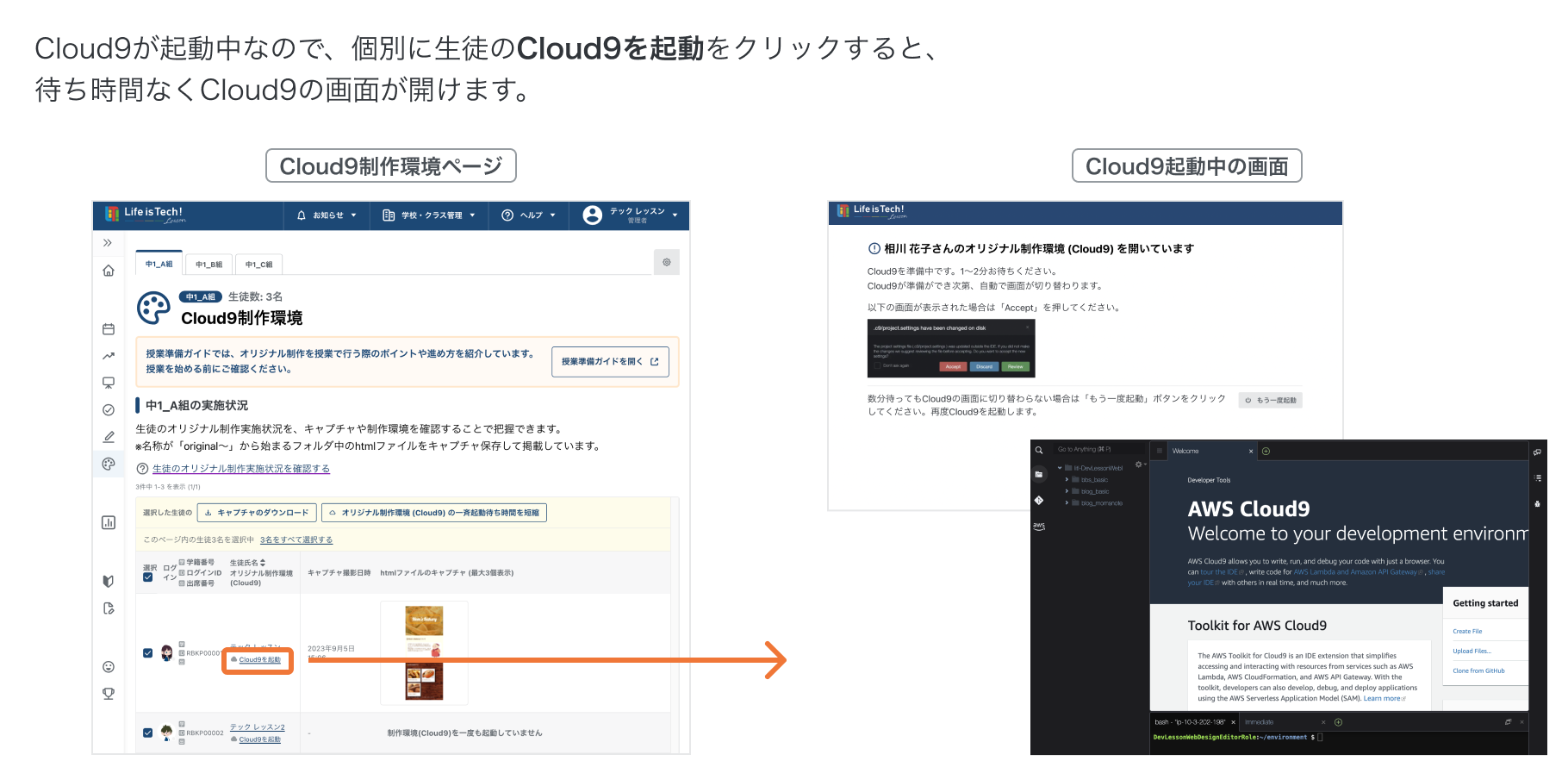 生徒のCloud9制作環境を一斉に起動して待ち時間を短縮する