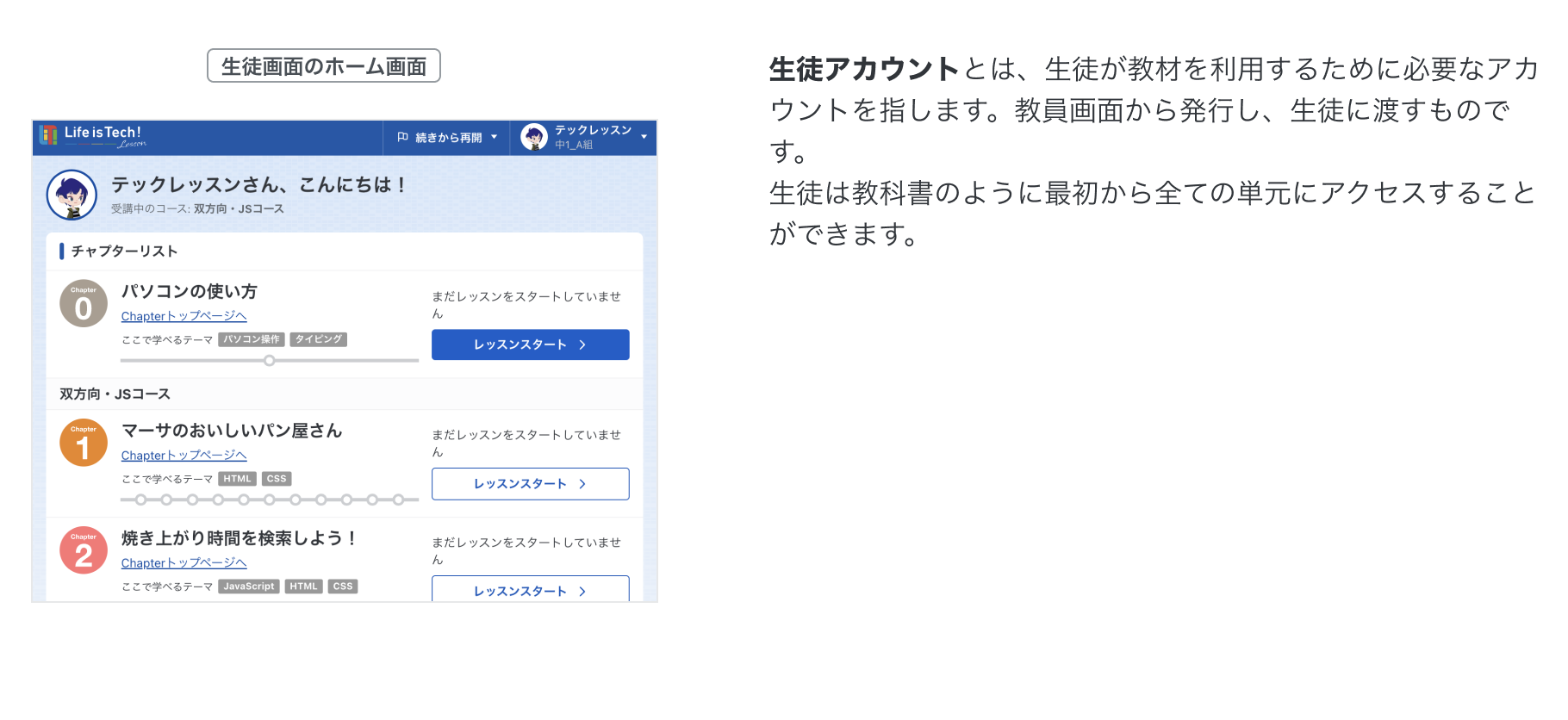 生徒アカウントについて 生徒アカウントについての説明です。 生徒アカウントについて 生徒アカウントを発行する詳しい手順は、以下の記事をご確認ください。 「生徒アカウントを新規発行する(一括)」記事へ 「生徒アカウントを新規発行する(個別)」記事へ
