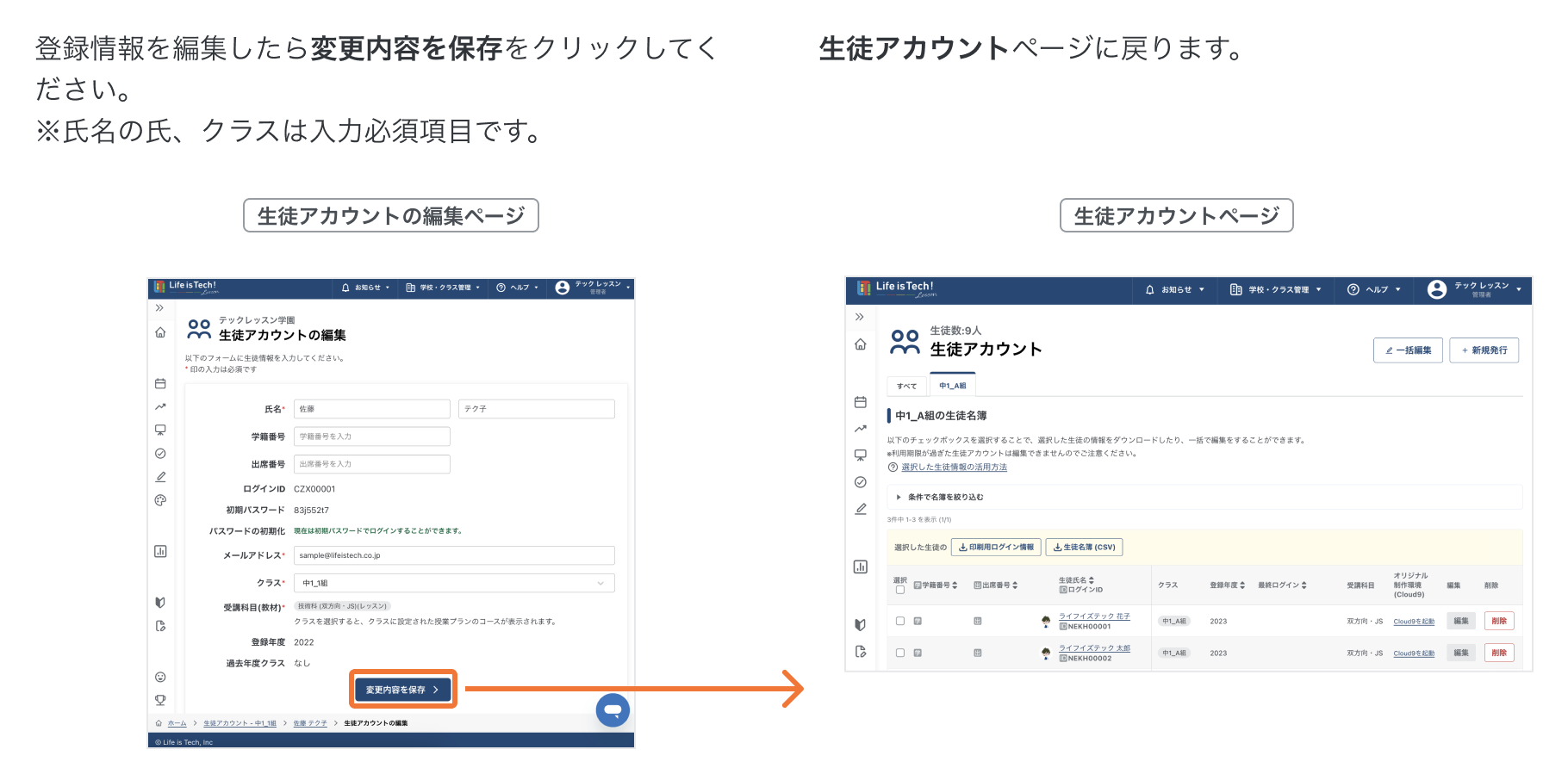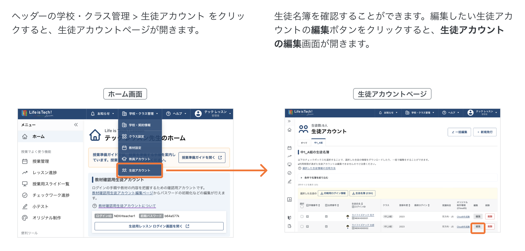 2. 生徒アカウントの編集