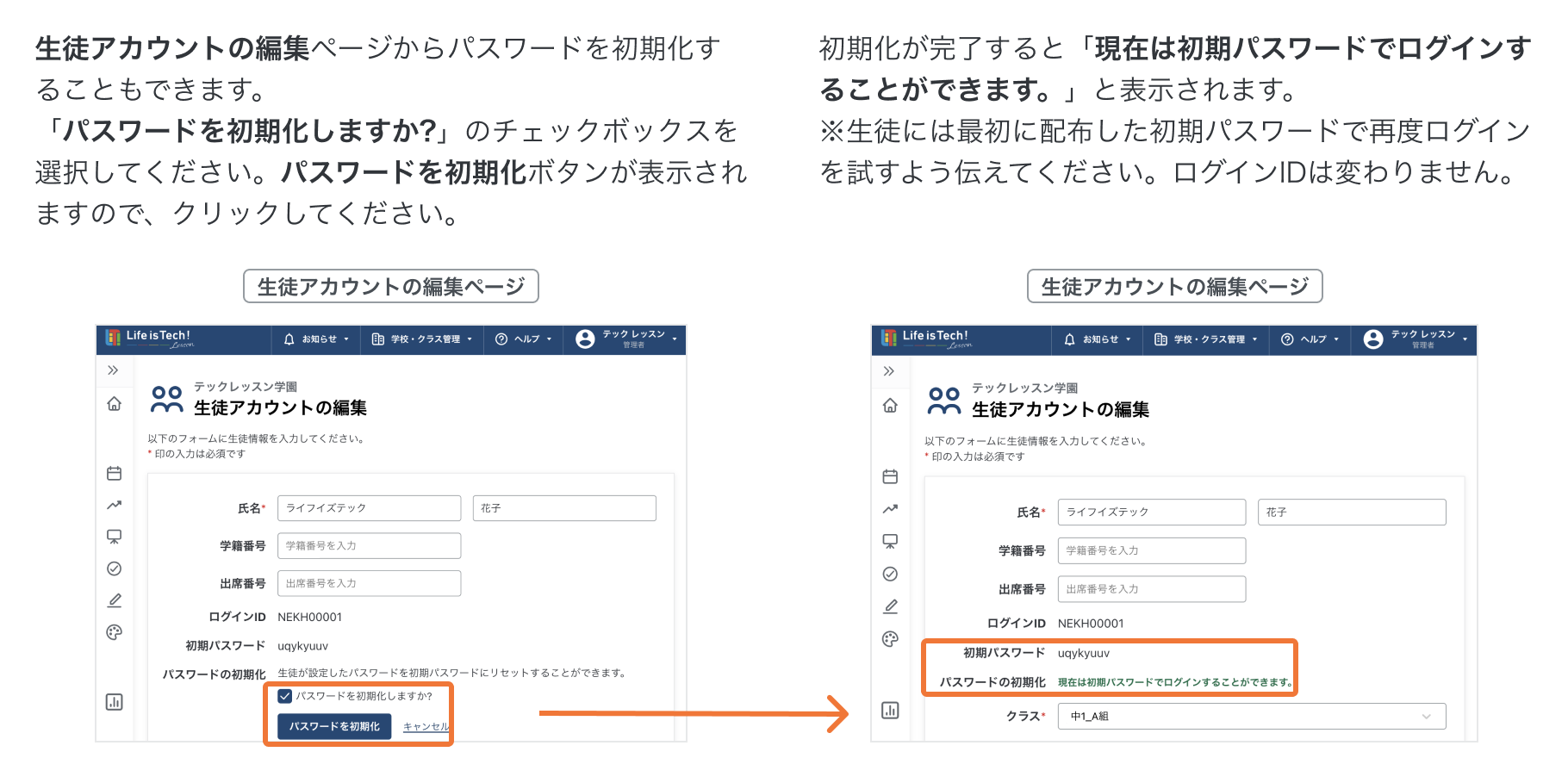 生徒アカウントを編集する(個別)手順です。