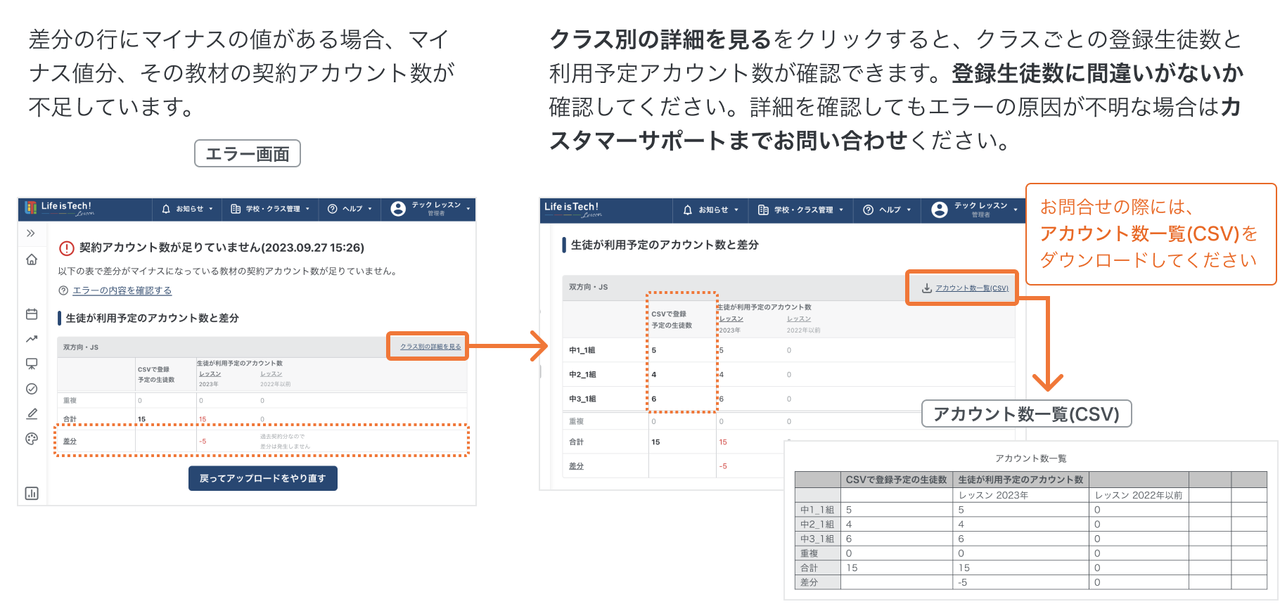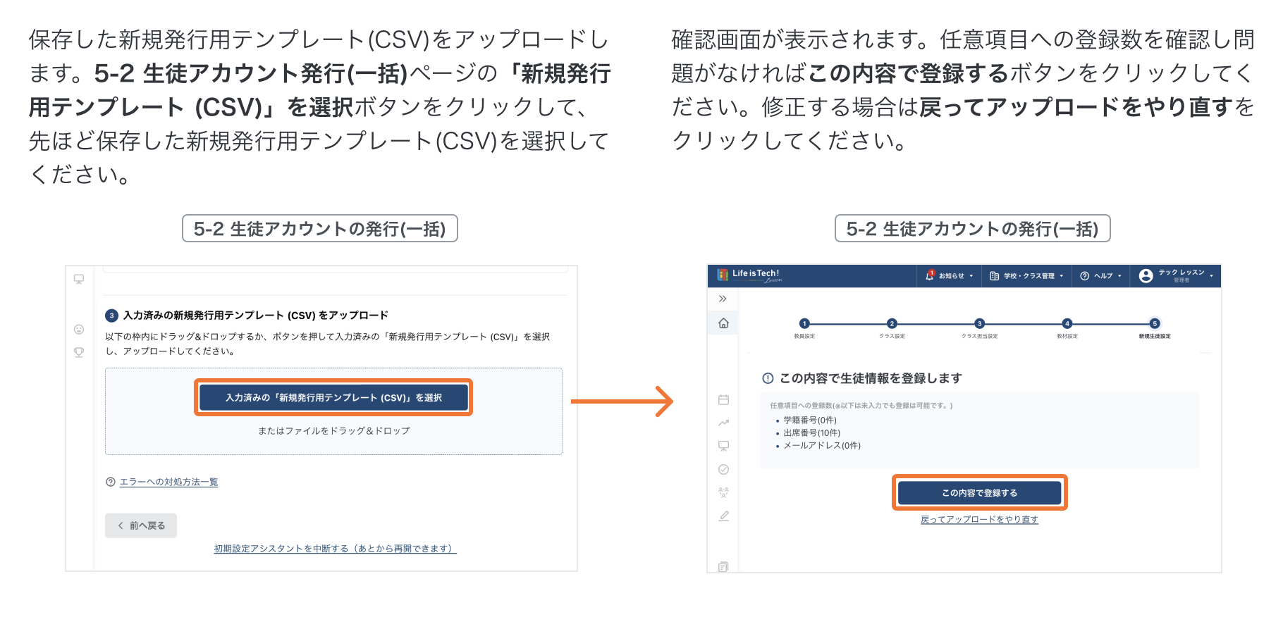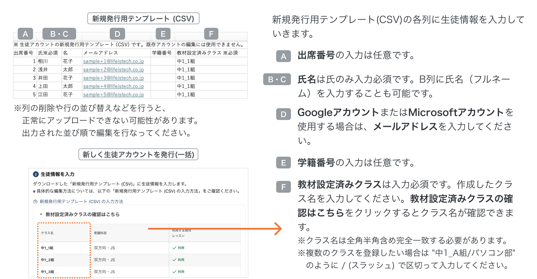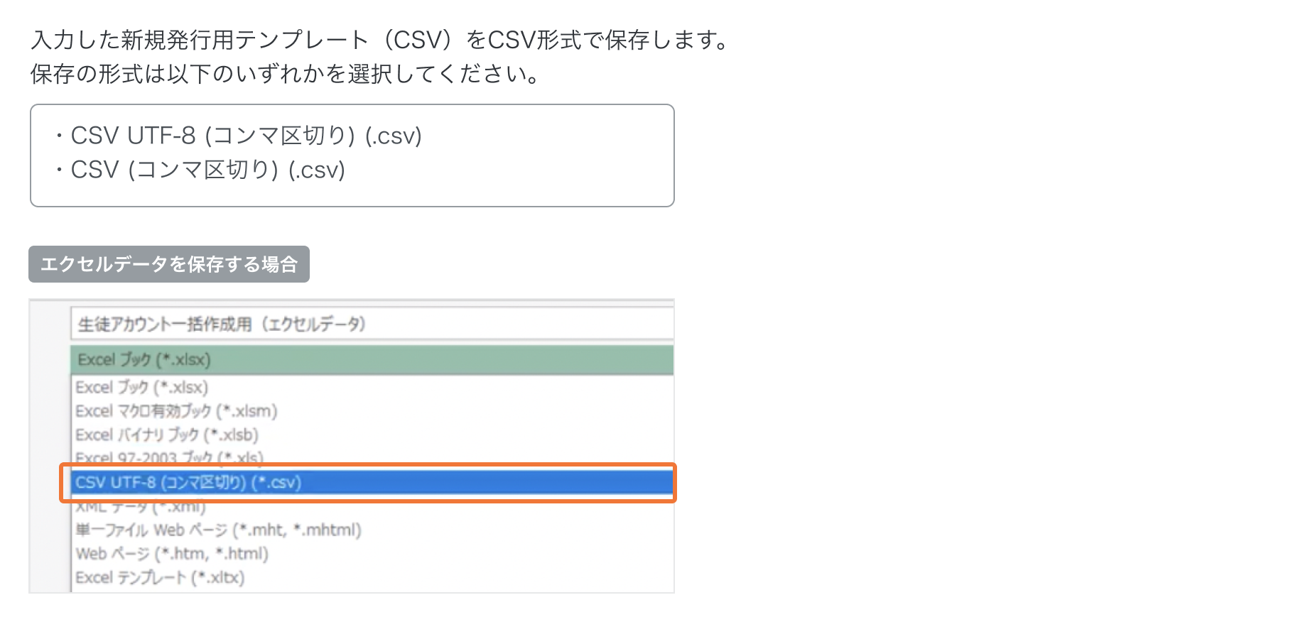 「新しく生徒アカウントを発行する時、新規発行用テンプレート(CSV)をアップロードするとエラーになります」記事へ