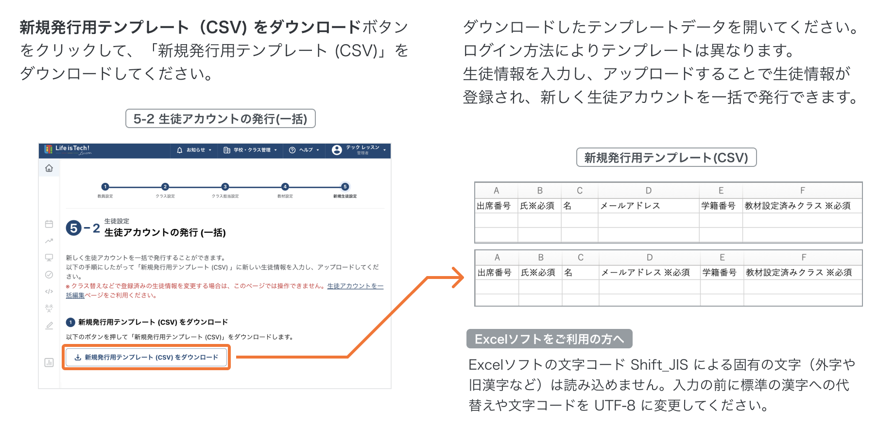 3. 新規発行用テンプレート(CSV)に生徒情報を入力する