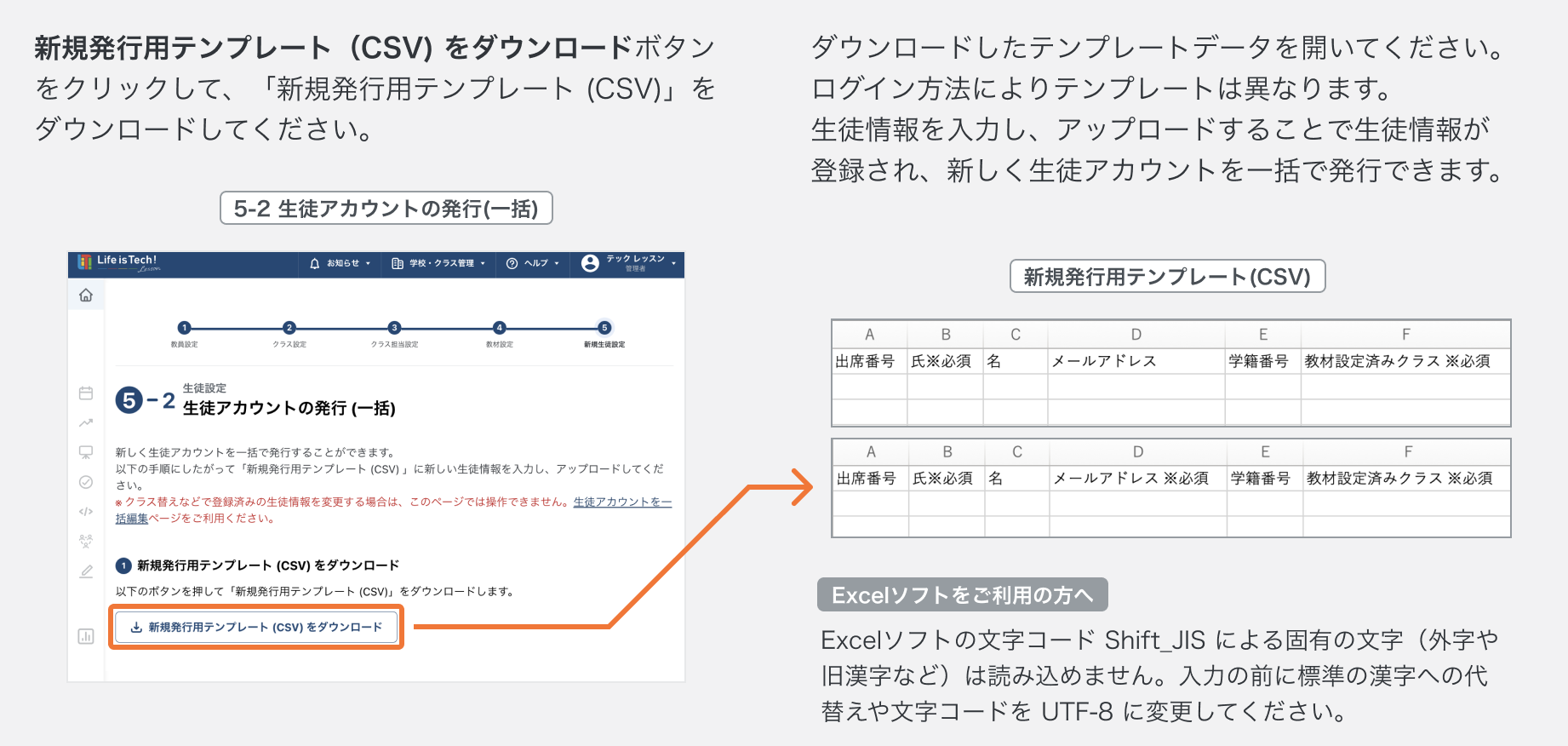 3. 新規発行用テンプレート(CSV)に生徒情報を入力する