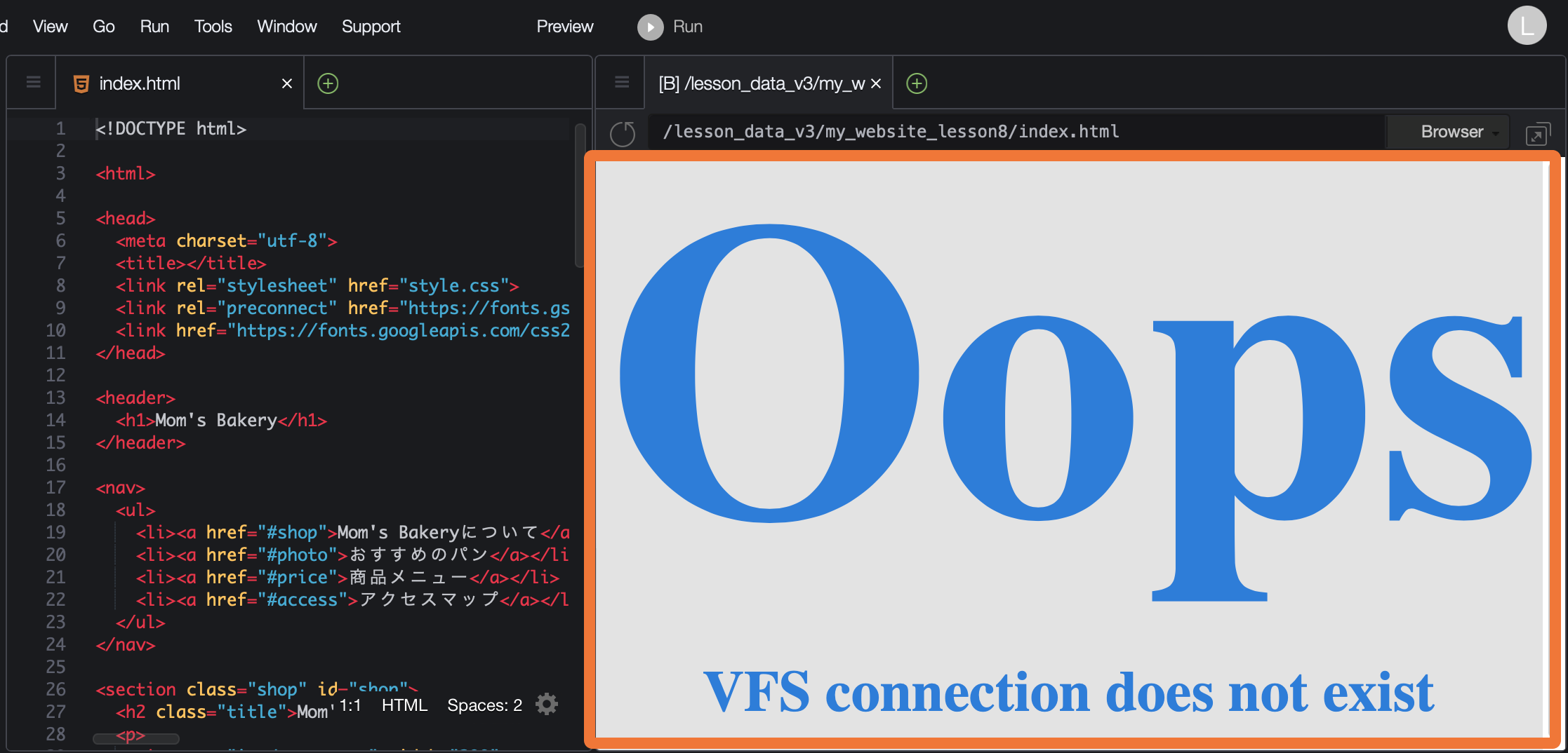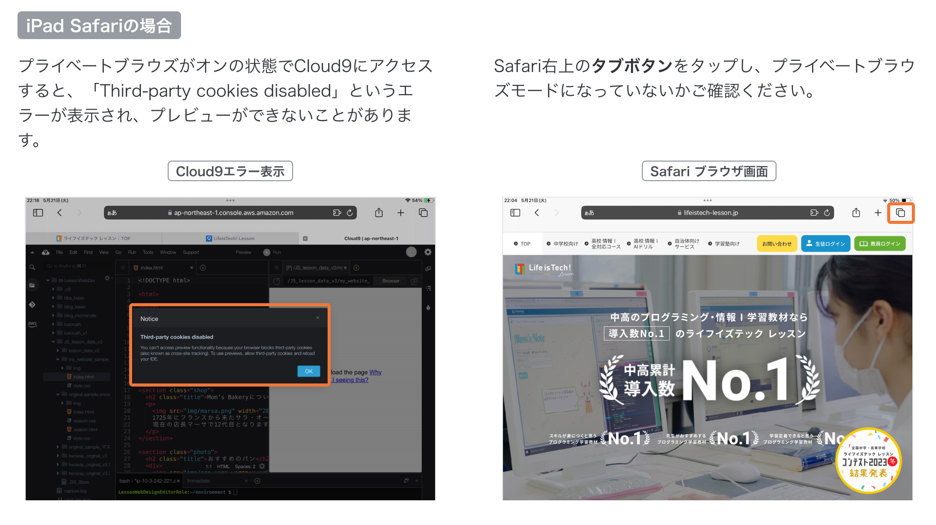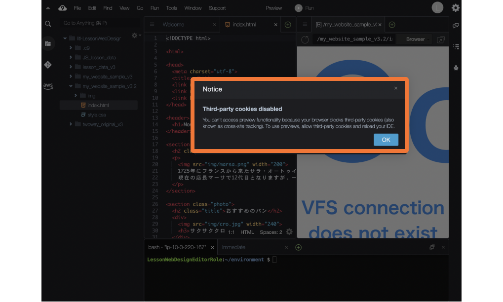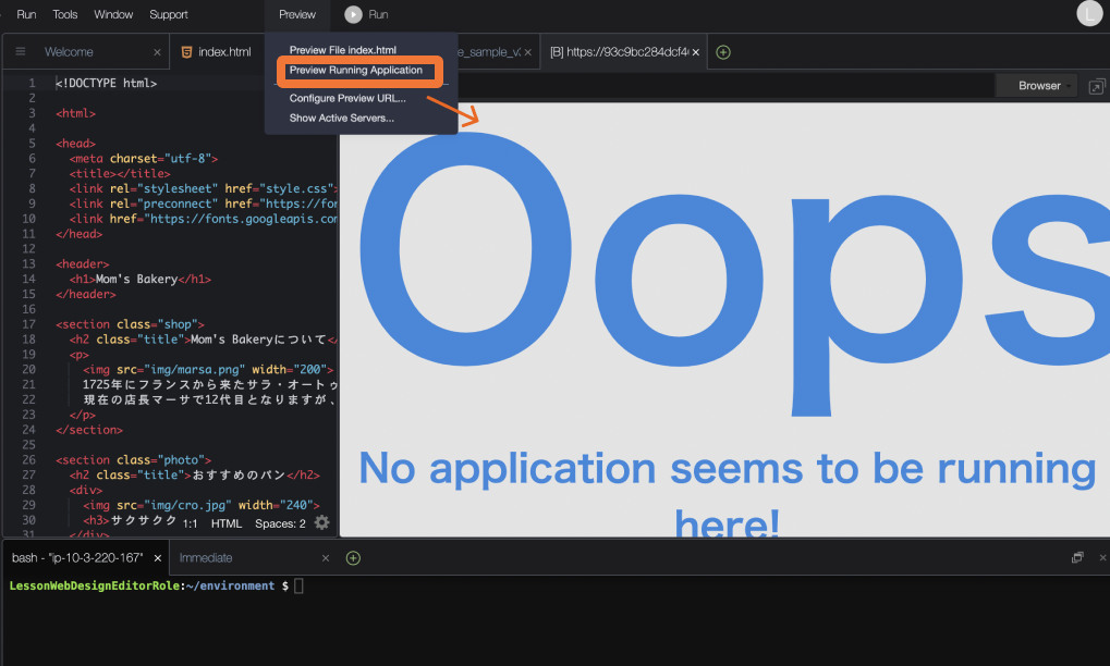 Cloud9でプレビューするとエラー表示になります