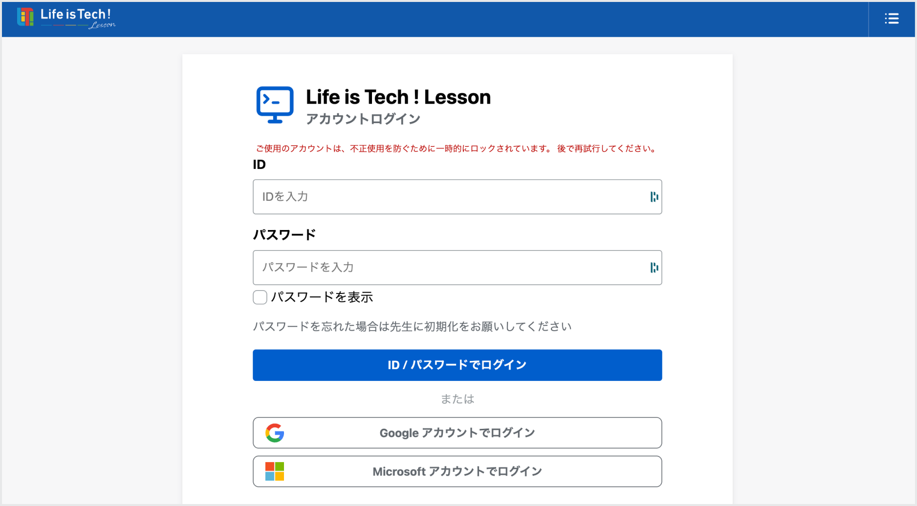 パスワードを初期化し、ログインし直してください