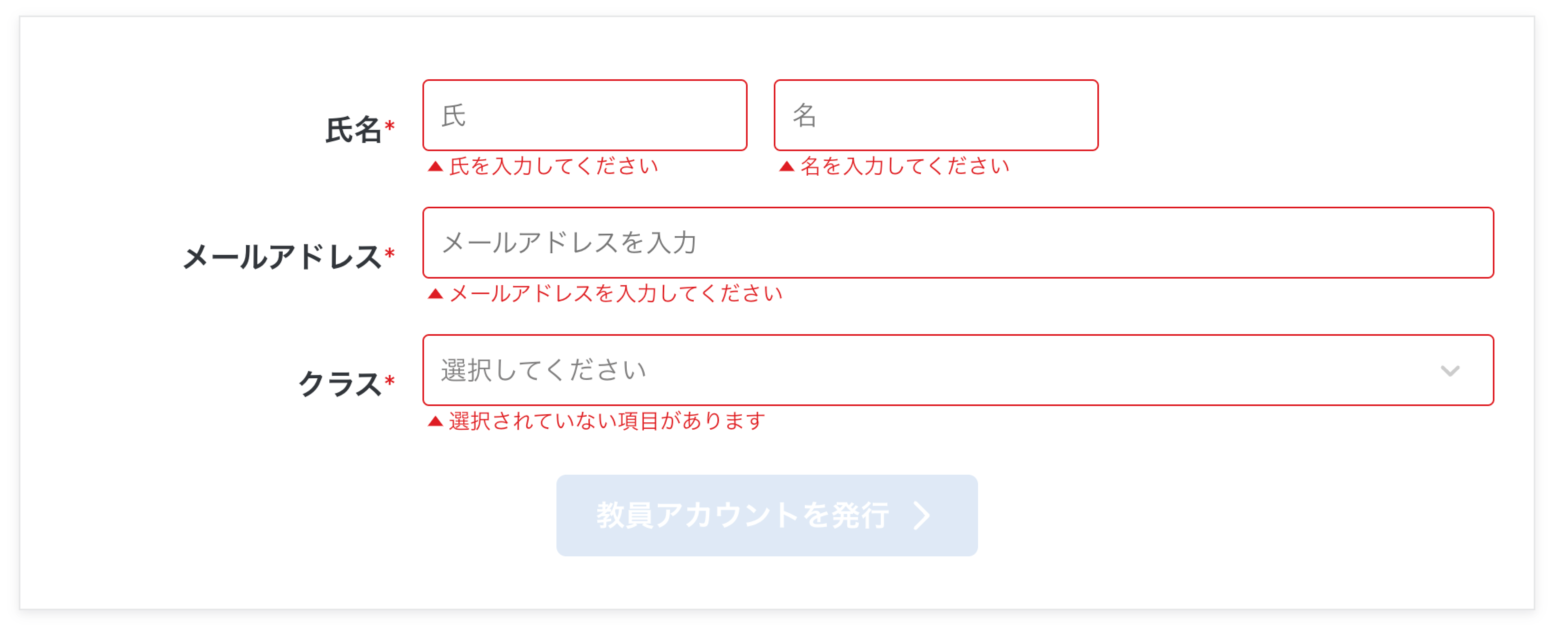 必須項目が入力されていない(氏名・メールアドレス・クラス)