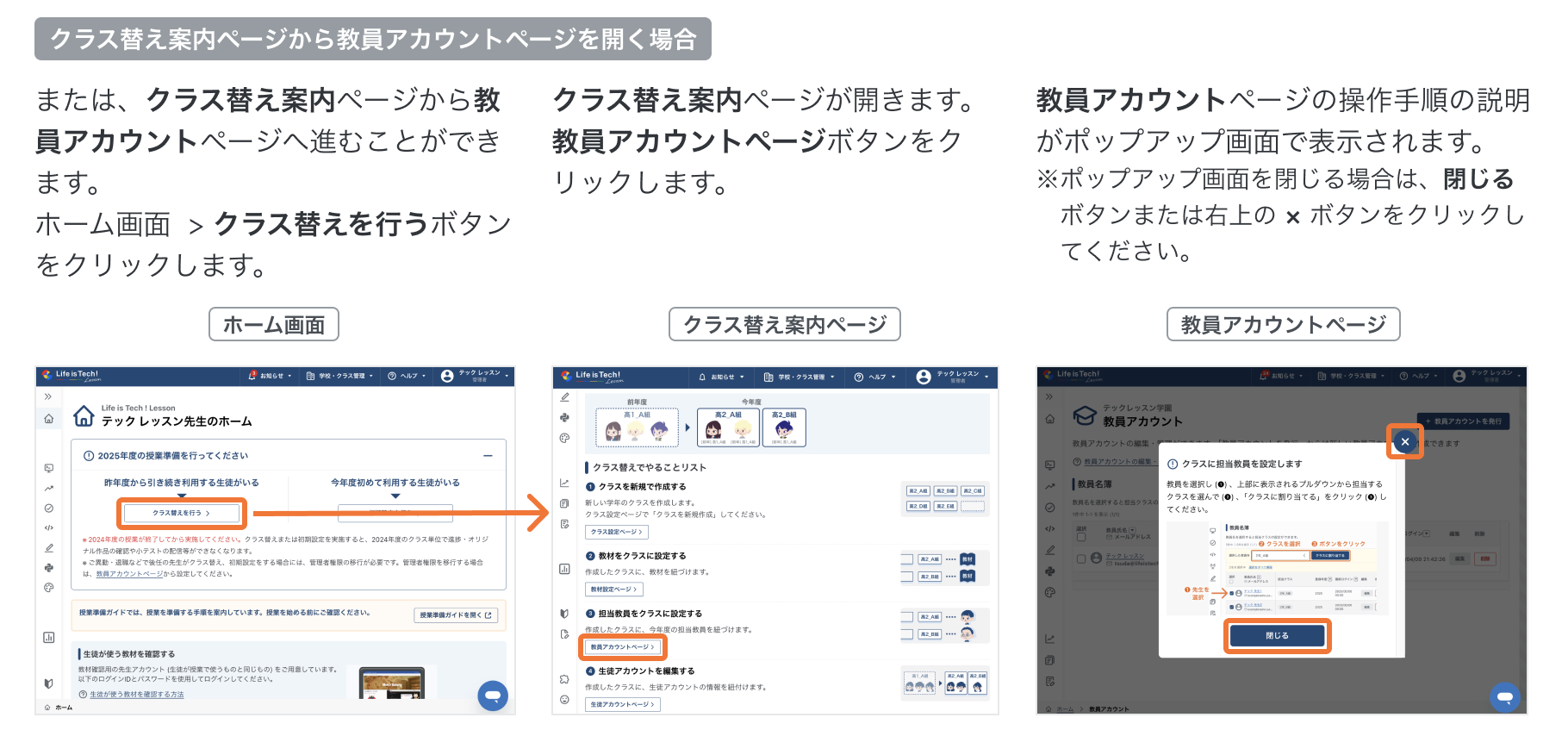 教員アカウントの権限を変更する詳しい手順は、以下の記事をご確認ください。
