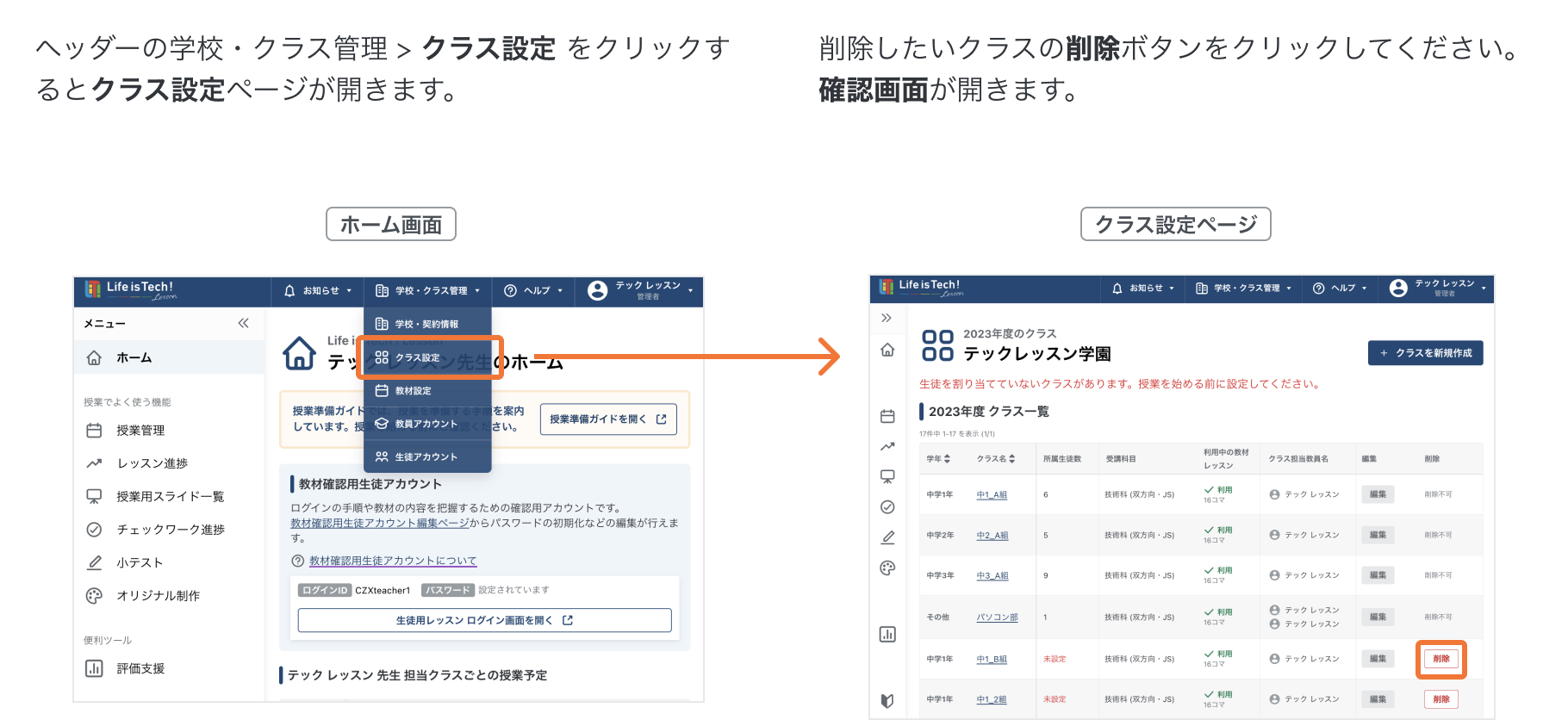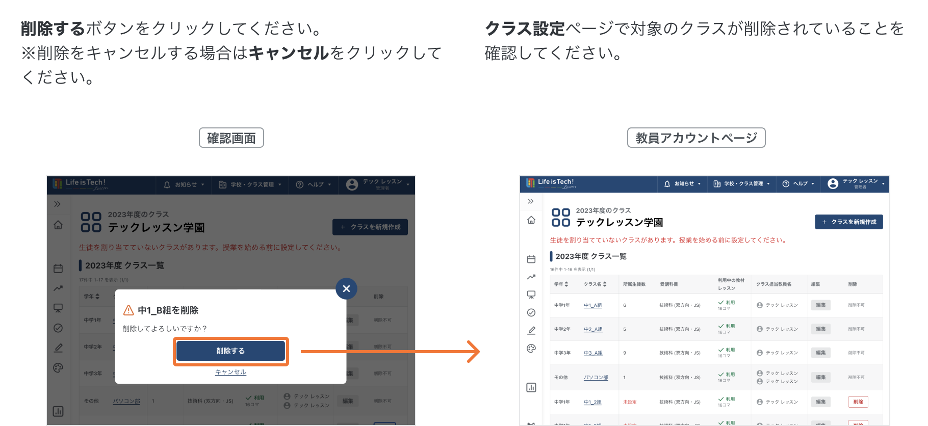 クラスを削除する
