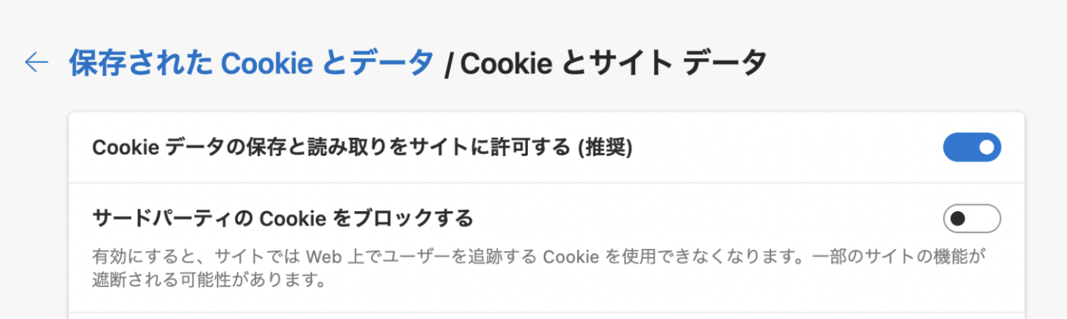 Cookieの設定を変更する方法については、【参考】ブラウザ別:Cookieの設定を変更する方法を参照ください。