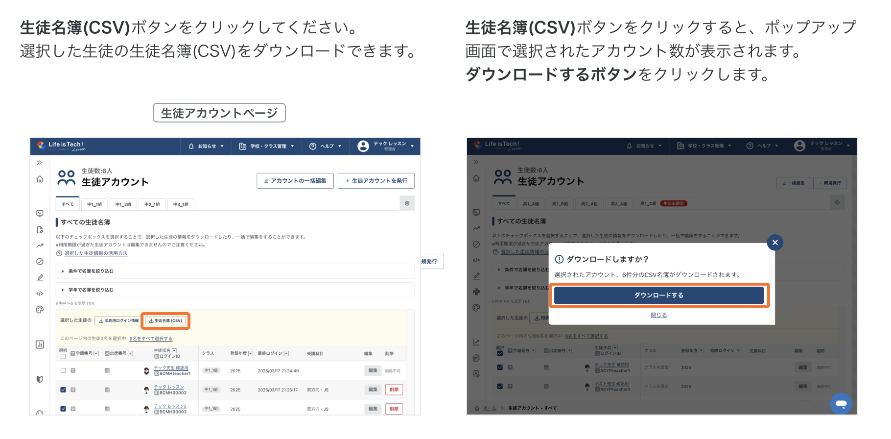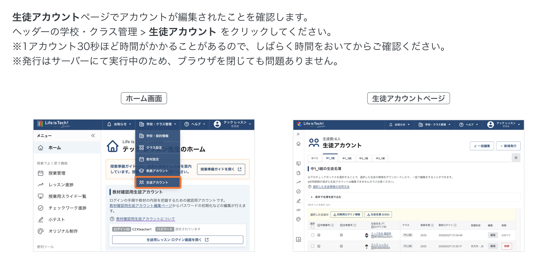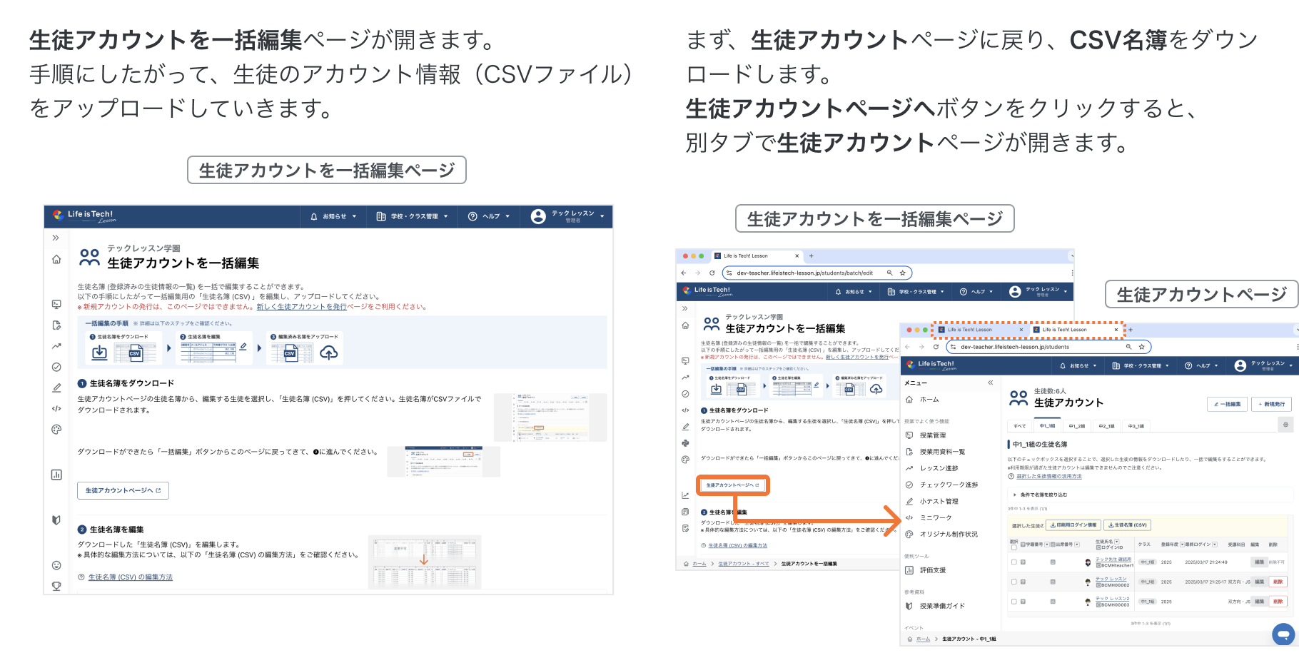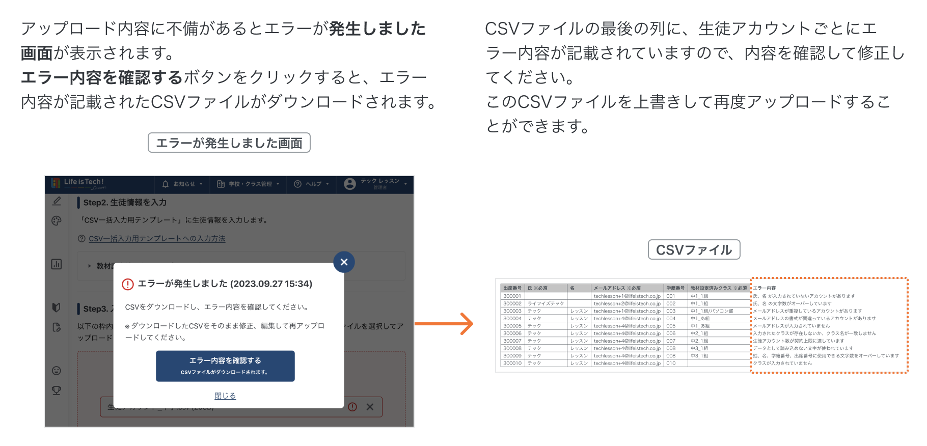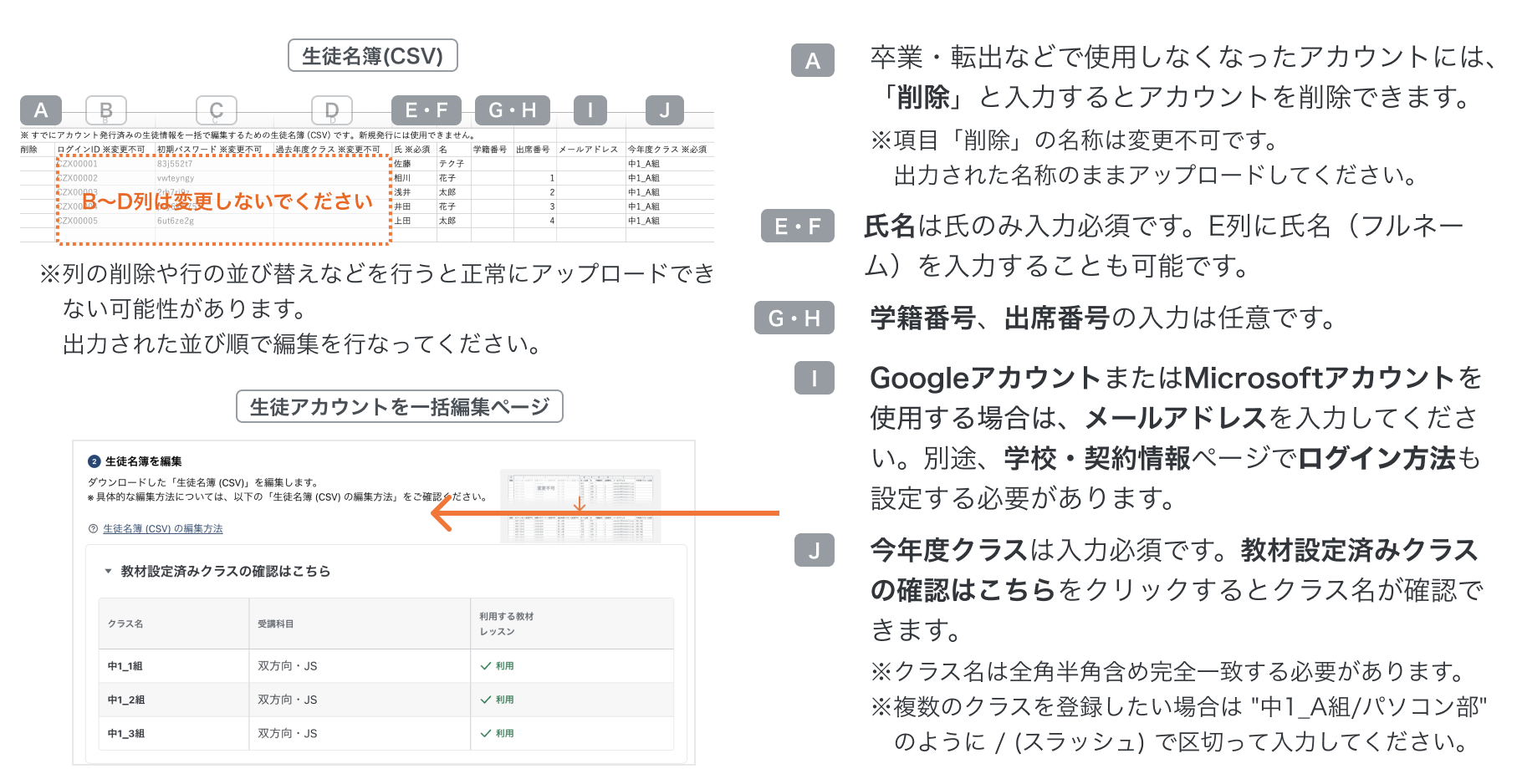 「発行済み生徒アカウントを編集し、生徒名簿(CSV)をアップロードするとエラーになります」記事へ