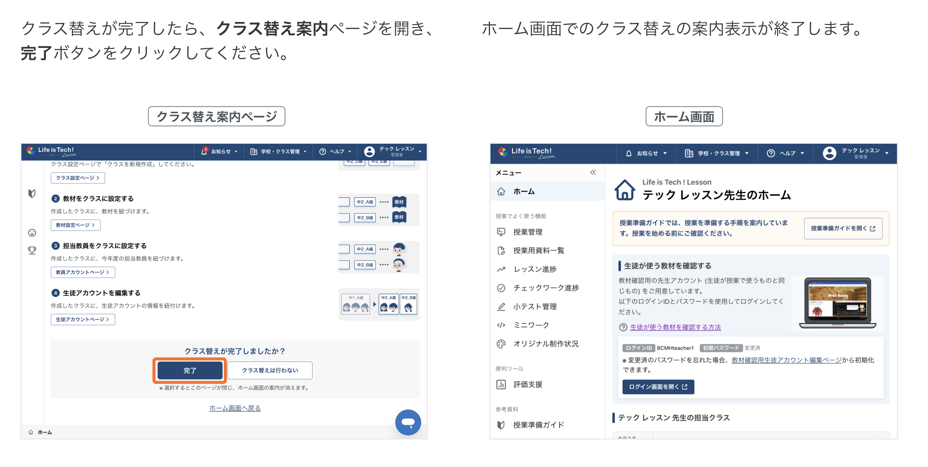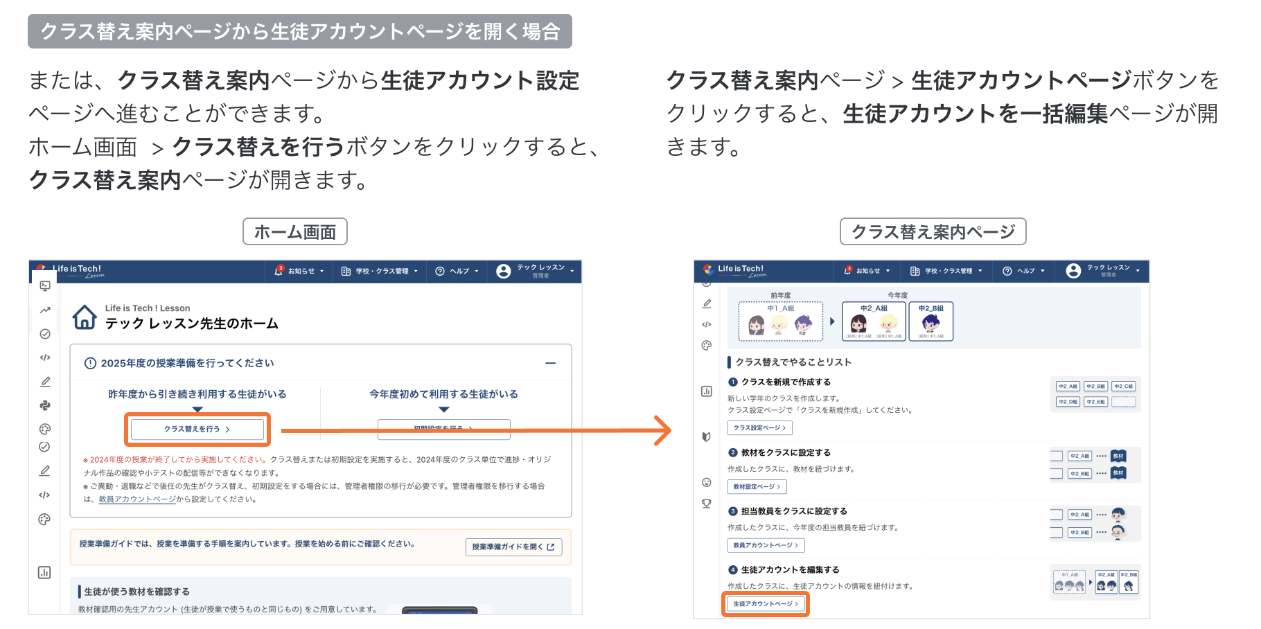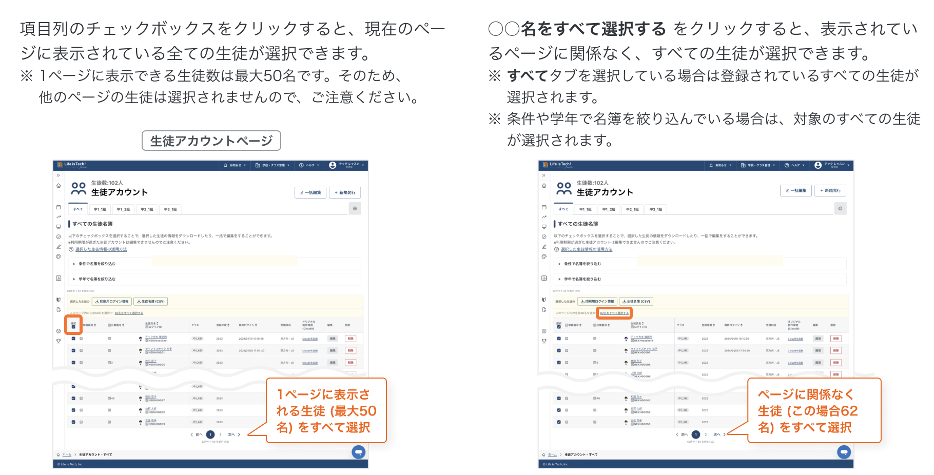 所属クラスや出席番号などの生徒情報を一括で更新することができます。