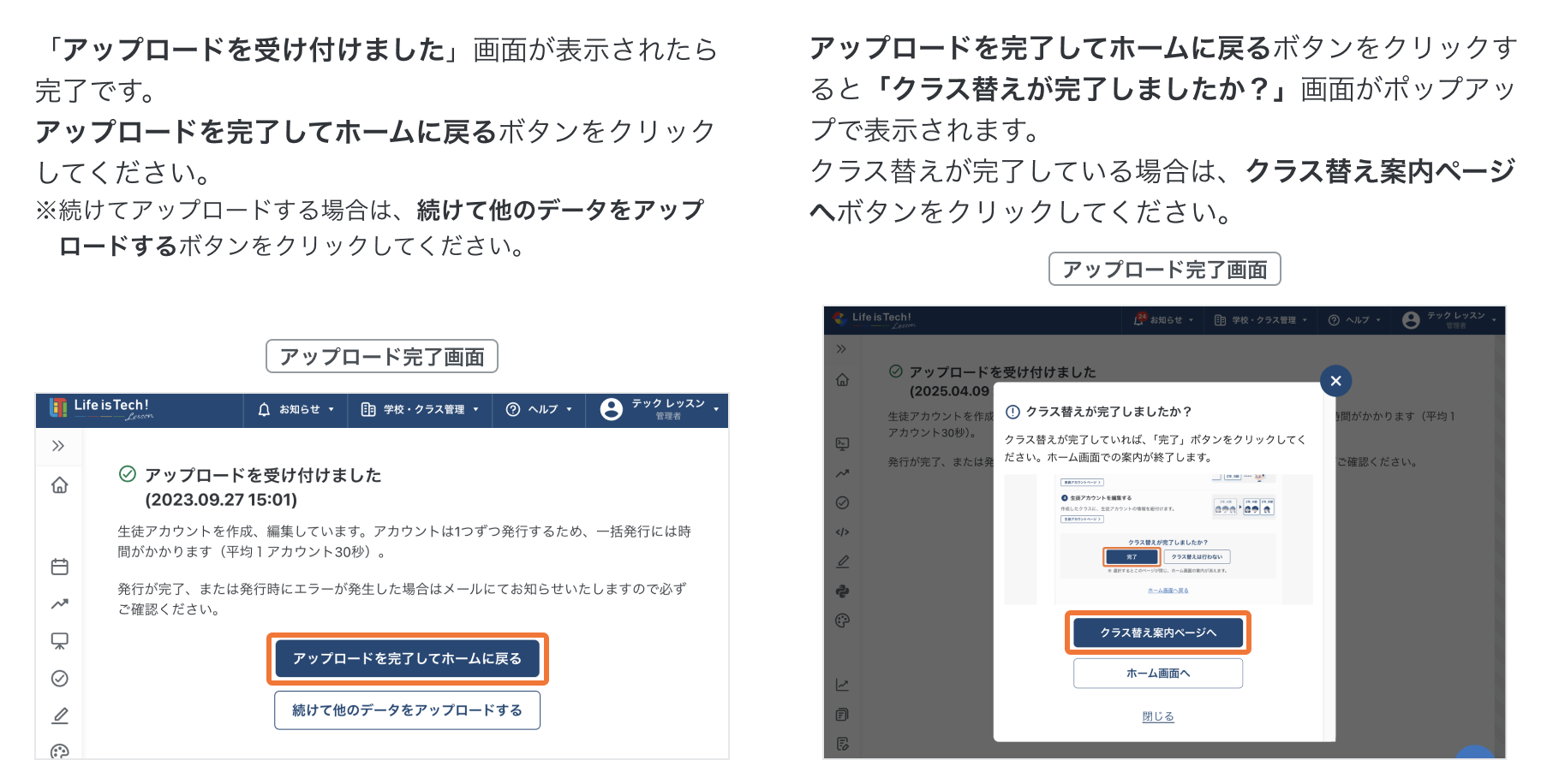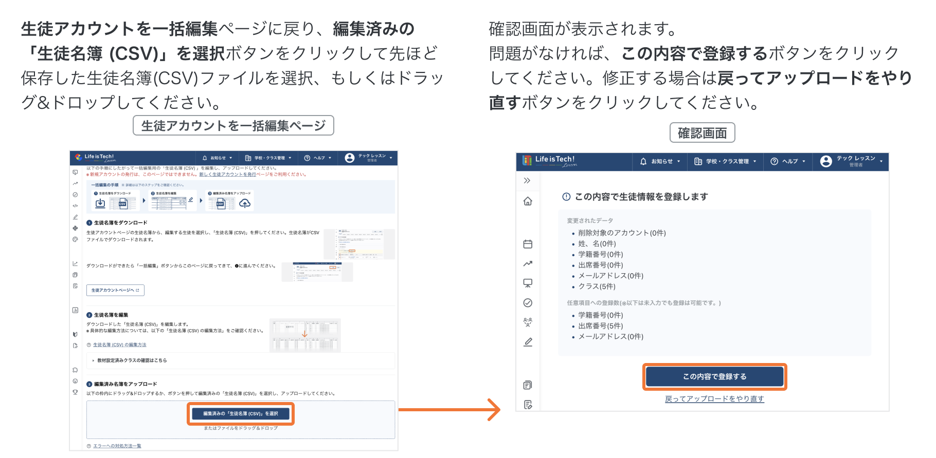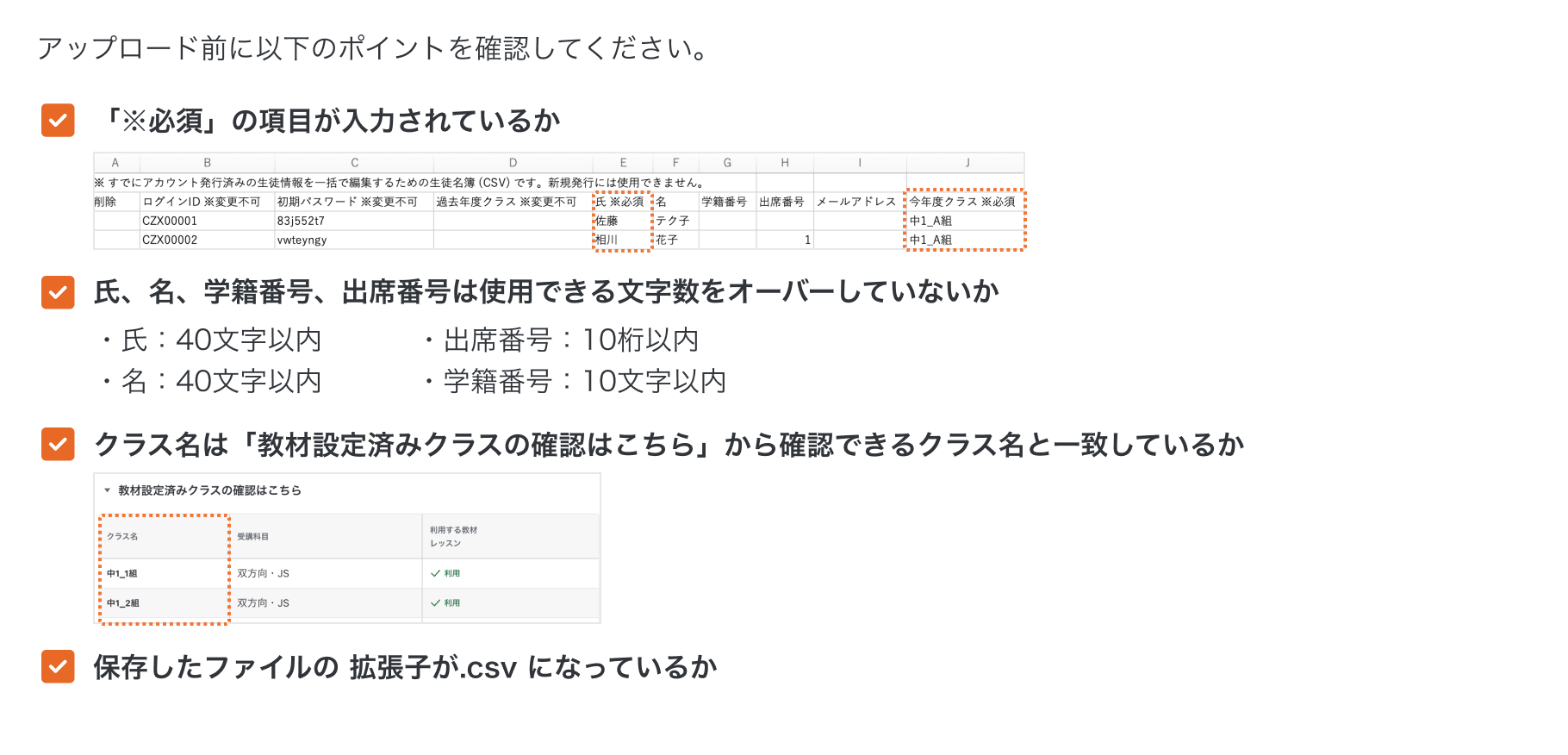7. 入力済み生徒名簿(CSV)をアップロードする