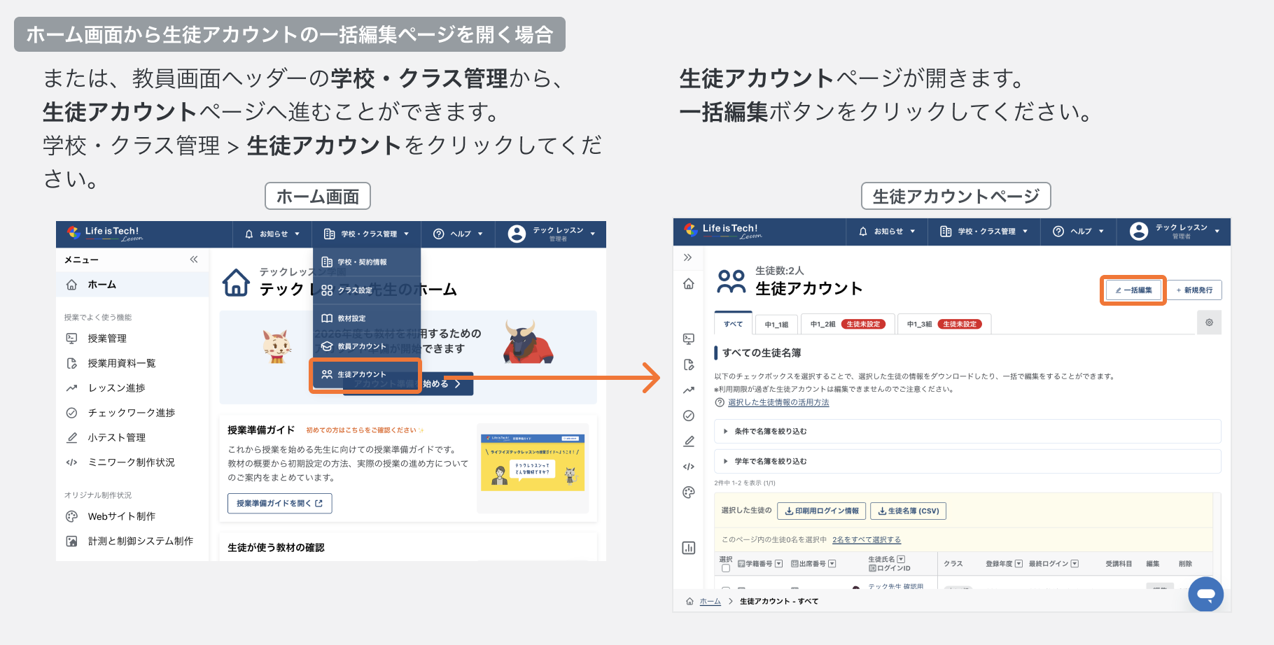 【詳細設定】❹ 生徒アカウントを編集する (一括)
