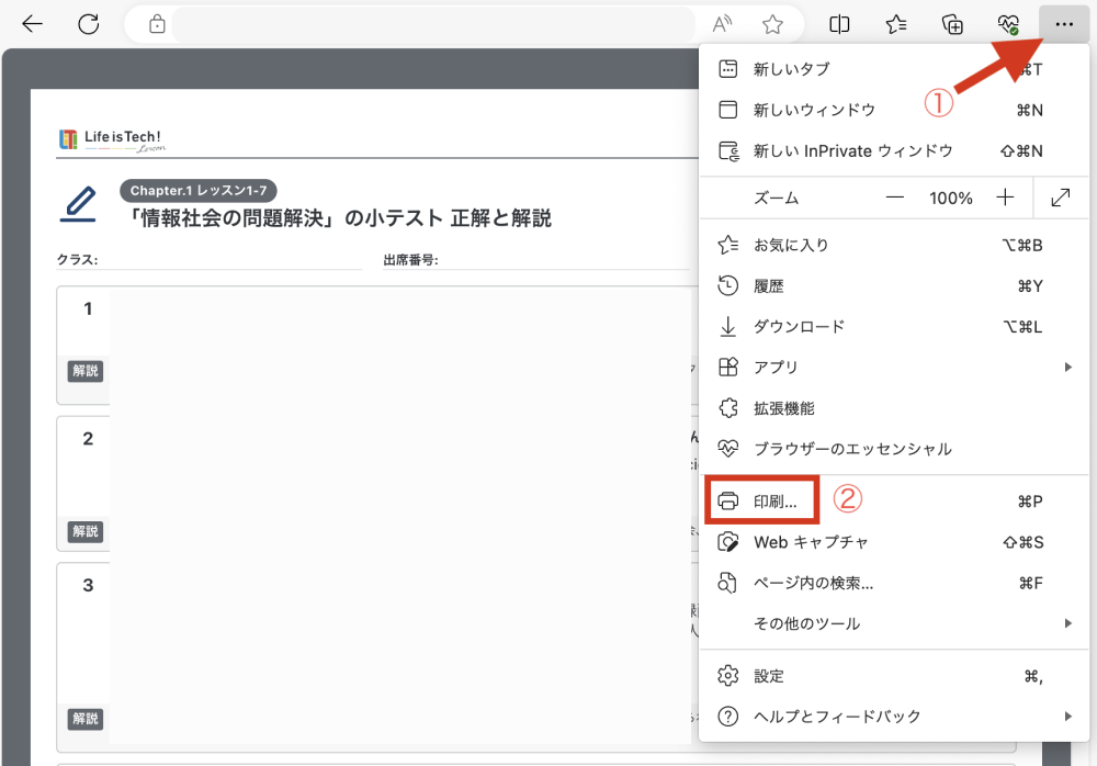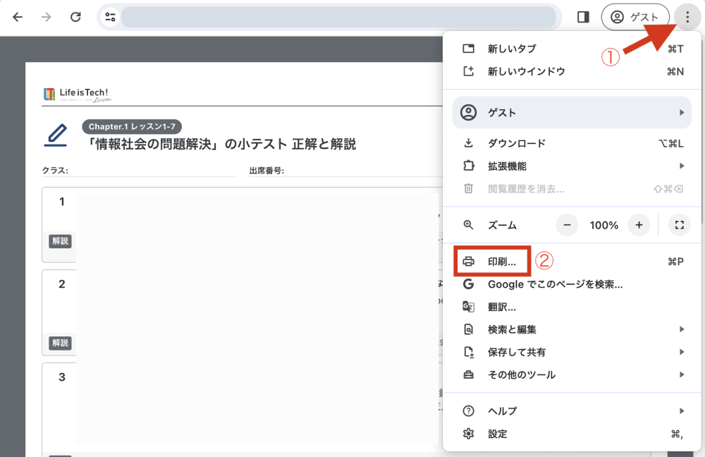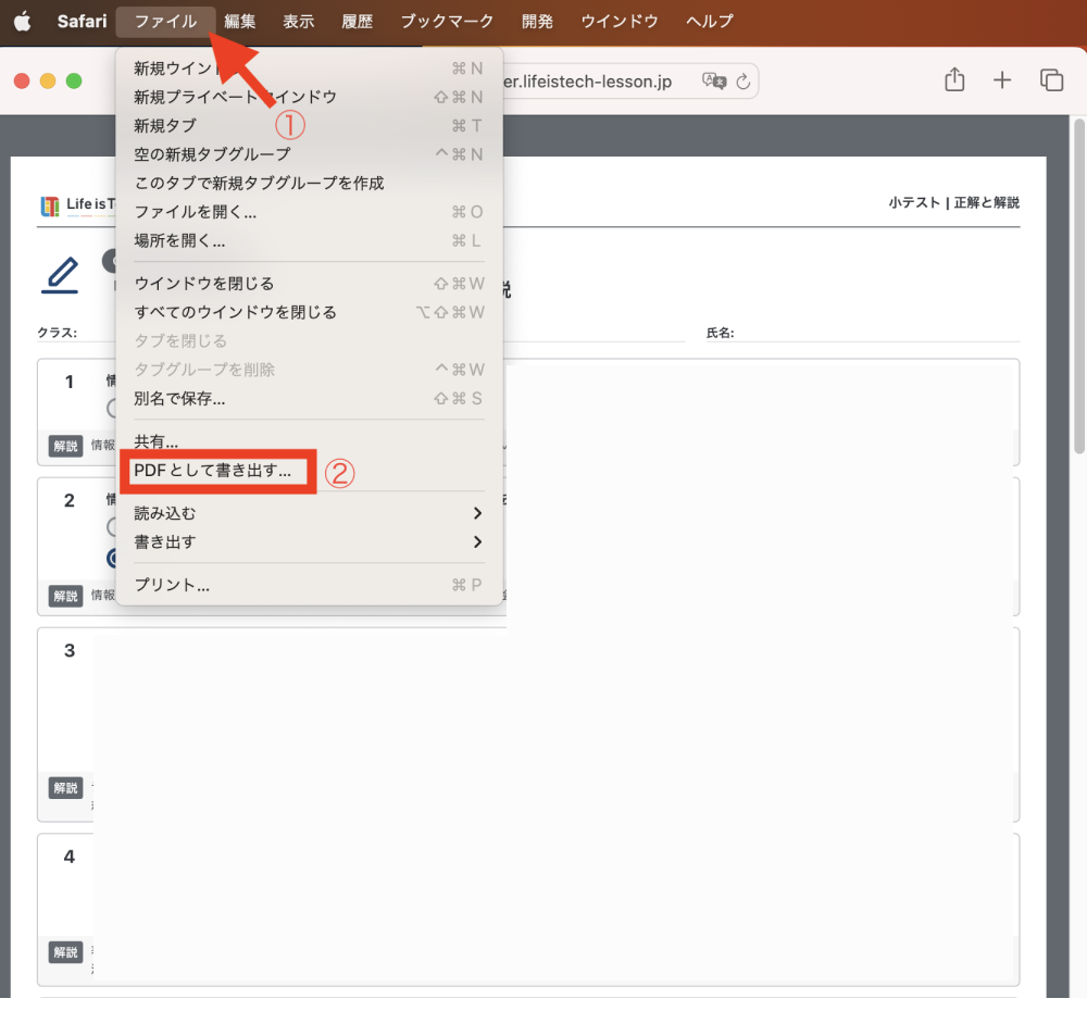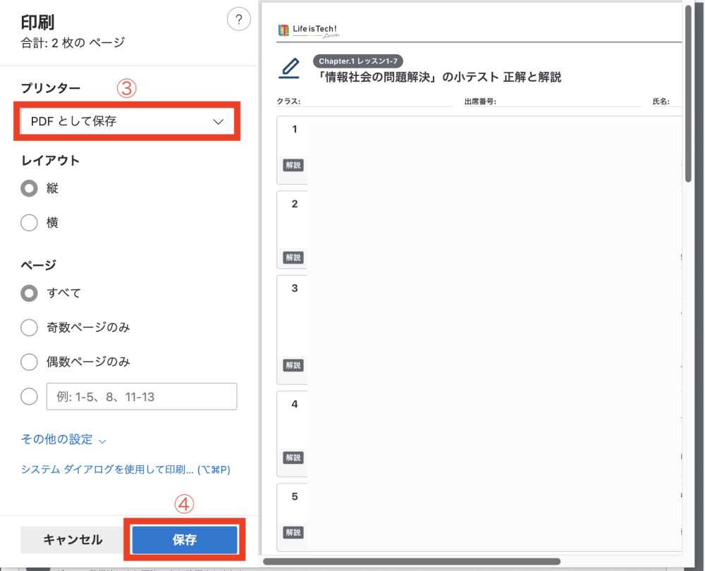 小テストの問題用紙や解説をPDFで保存するにはどうすればよいですか?