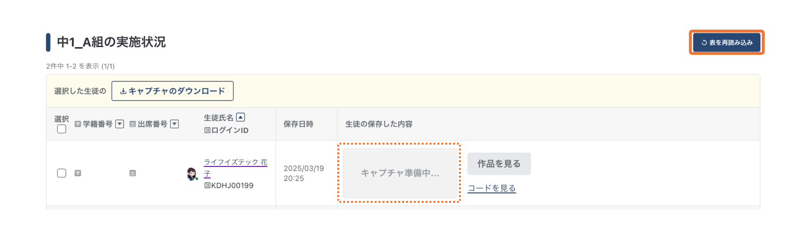 表示されるまで1分ほどお待ちください。「表を再読み込み」ボタンをクリックし、再度読み込んでください。