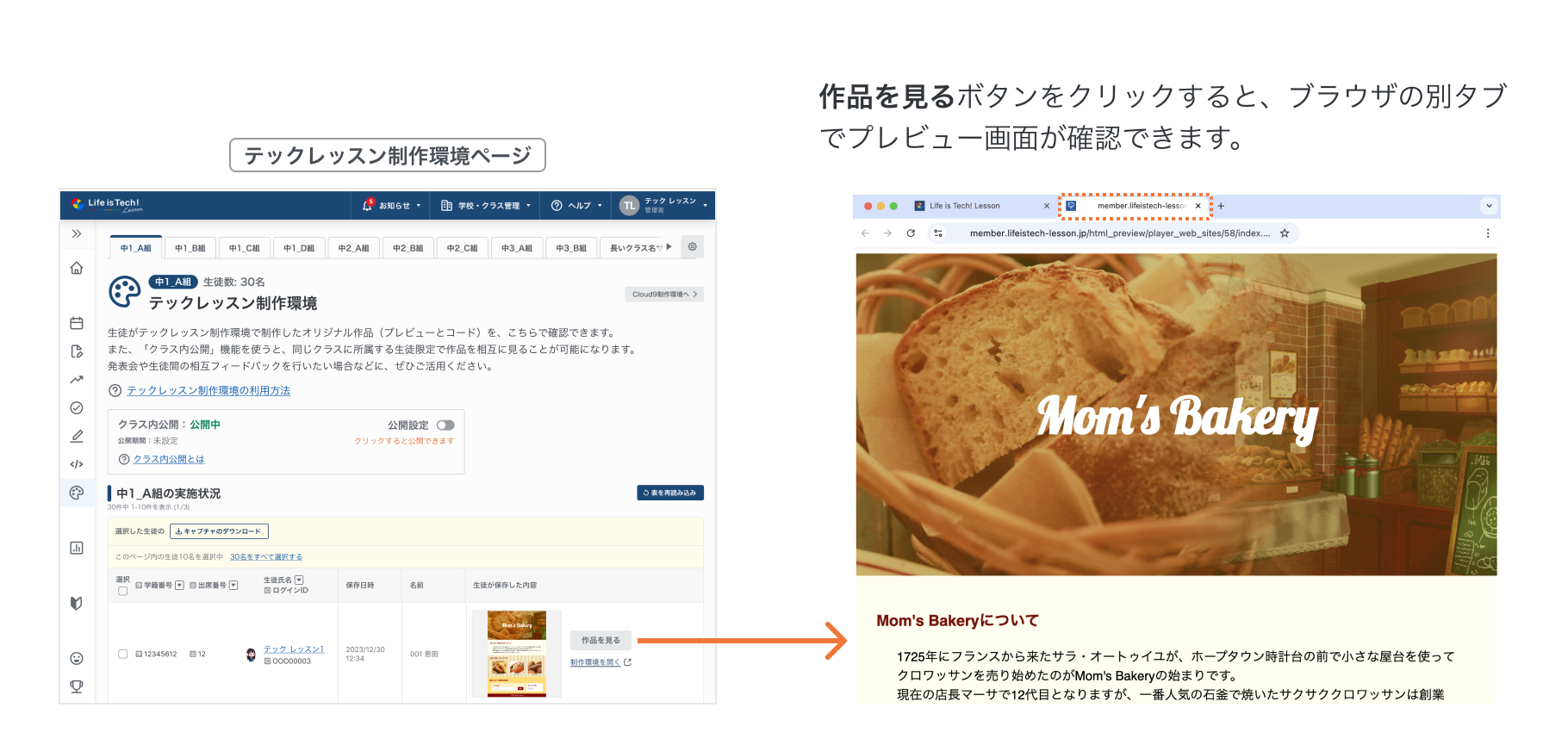 先生が生徒のテックレッスン制作環境の制作状況を確認する方法です。