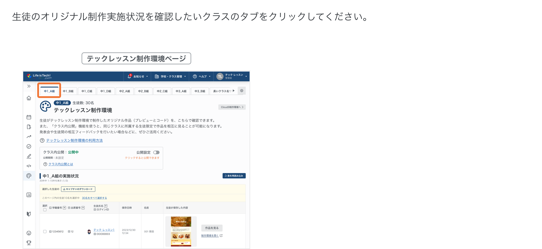 「【技術科/総合など(~24年度版)】生徒のテックレッスン制作環境での制作状況を確認する」の記事へ