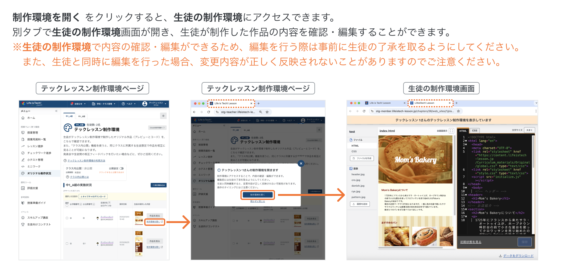 4. 生徒の制作環境にアクセスする(生徒が制作した作品の内容を確認・編集する)